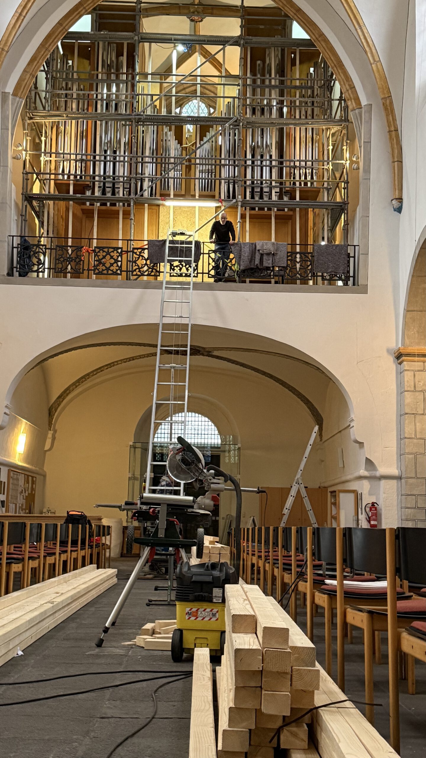 Vor Beginn der Sanierung der Türme Anfang Februar wird die Orgel der Florinskirche von einer Fachfirma eingehaust, um Schäden durch Staub und Witterungseinflüsse zu vermeiden.